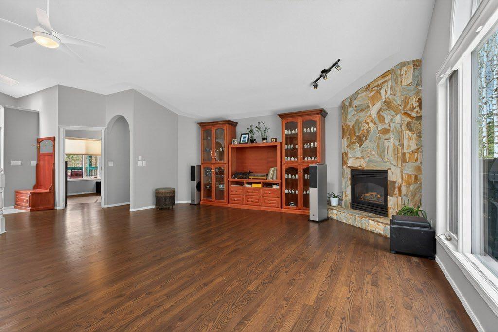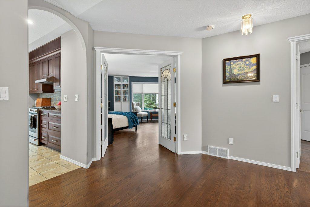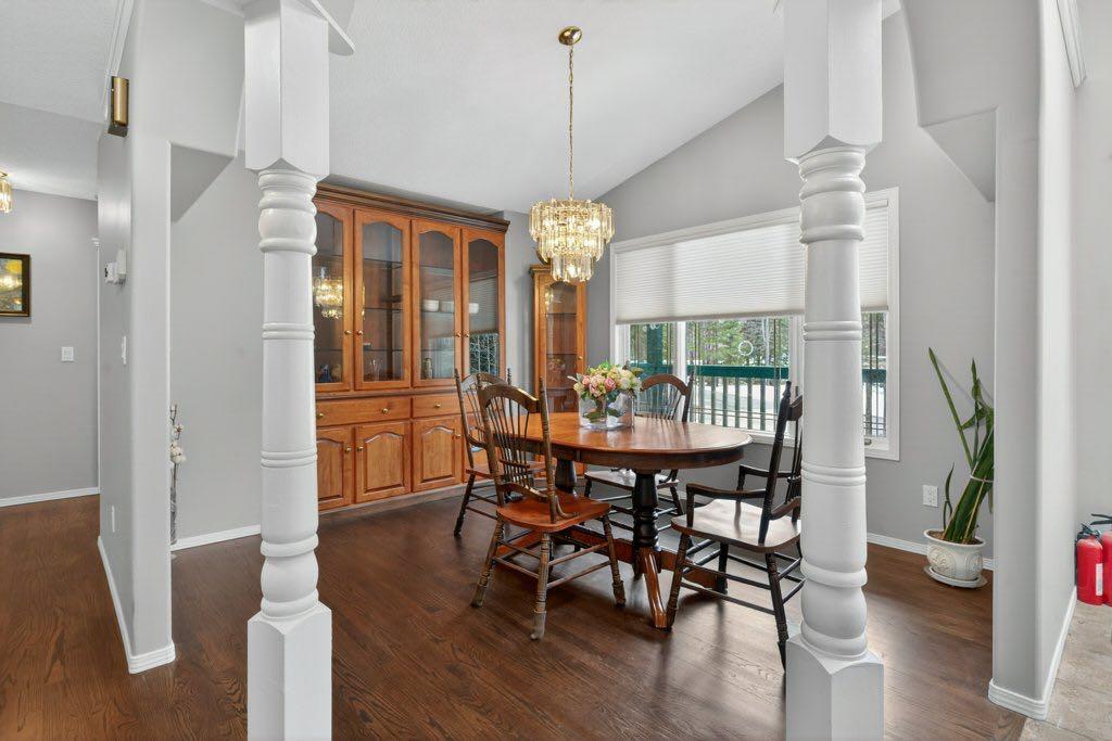 Set on 4.00 acres of mature trees in The Highlands of West Bragg Creek, this walkout bungalow offers a balance of space, functionality, and a quiet rural setting just minutes from the hamlet. With over 2,400 square feet above grade and a fully developed lower level, the home features five bedrooms and 3.1 bathrooms, with a layout that supports both day-to-day living and hosting family and guests . The main floor includes three bedrooms, a formal dining room, private office, and a spacious living area anchored by oak hardwood flooring and large windows that connect the home to its natural surroundings. The kitchen has been updated and provides ample storage and workspace with an island the size of, well, an island! It transitions into a breakfast nook and out to a large deck with glass railing—an ideal spot to take in the natural beauty and seasonal creek. Neutral paint throughout creates a cohesive, move-in ready feel, while Hunter Douglas honeycomb blinds add both style and efficiency. The primary suite includes an updated ensuite with in-floor heat and a curb-less shower, designed with comfort and accessibility in mind. An elevator lift connects the garage, main level, and walkout basement, offering flexibility for a variety of living needs. The lower level includes a large recreation space with a games area, a pool table (included), two additional bedrooms, and a second office that could also function as a bedroom. Practical upgrades include the removal of Poly-B plumbing, two newer furnaces, a hot water tank, and a reverse osmosis system all within the past 7 years. The home is serviced by a well and septic system that has been maintained to ensure proper functioning. For those needing workspace or storage, the property is well equipped with a heated attached triple garage with high ceilings and room for car-lifts, a heated detached double garage/shop, and an RV parking port with electrical service. A lawn tractor with snow blower and mower attachments is also included, supporting year-round property maintenance. Beyond the property, the location offers direct access, within walking distance to some of Alberta’s most sought-after outdoor amenities. Trails in nearby Kananaskis Country and West Bragg Creek provide year-round opportunities for hiking, cross-country skiing, and mountain biking. The hamlet of Bragg Creek offers a range of local shops, restaurants, and services, along with a strong sense of community, all within a short drive. Calgary’s west edge is also accessible for commuting or additional amenities. This is a property that combines functional acreage living with access to both nature and nearby services, in one of the more established and desirable areas west of the city. MLS®: A2303273 - The Highlands Acreage with Residence,Bungalow $1,599,900