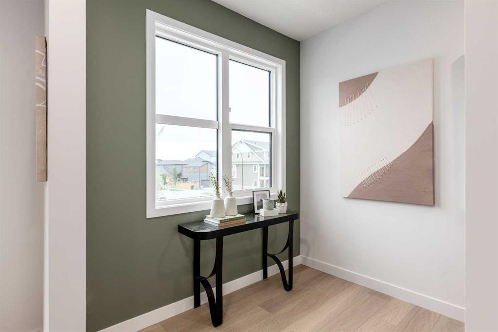 WHEN HOME DOUBLES AS YOUR OFFICE, IT NEEDS TO DO MORE THAN LOOK GOOD. This three-storey townhome in Woodland at Alpine Park was built for the work-from-anywhere crowd — people who want sunlight, flow, and an address that makes getting out of town as easy as logging off. On the ground floor, there’s room to breathe before the day starts. The front entry actually feels like one, not a bottleneck. The flex room catches the western light all afternoon — bright, quiet, and just far enough from the kitchen to feel like you’ve gone somewhere. It’s the kind of workspace that keeps you focused, then doubles as a yoga mat zone or creative corner when the laptop closes. And when it’s time to hit the road, the insulated double garage makes early-morning drives and weekend escapes effortless. Up one level, everything loosens up. The living area takes in the west exposure, keeping the space bright and grounded. At the back, the kitchen layers design and function — quartz counters, full-height backsplash, chimney hood, and an island that becomes whatever the day calls for. Step through to the 17’11” × 6’8” balcony, where coffee breaks, sunset wine, and mountain-planning sessions all feel equally at home. Upstairs, the primary bedroom keeps it calm with a walk-in closet and three-piece ensuite that make mornings feel easy. Two more bedrooms, a full bath, and upper-floor laundry keep everything moving without chaos. Finishes stay timeless: durable LVP, layered lighting, and a modern mix of exterior materials that give Woodland its clean architectural edge. And then there’s Alpine Park — Calgary’s southwest gateway to everywhere. Close enough to the city to keep your commute short, yet perfectly placed for spontaneous mountain runs. Possession is expected in mid-November, just in time to settle in before the snow flies. Come see why Woodland isn’t just where you live — it’s where your week finally finds balance. • PLEASE NOTE: Photos are of a finished Showhome of the same model – fit and finish may differ on finished spec home. Interior selections and floorplans shown in photos. MLS®: A2266563 - Alpine Park Townhouse $549,900