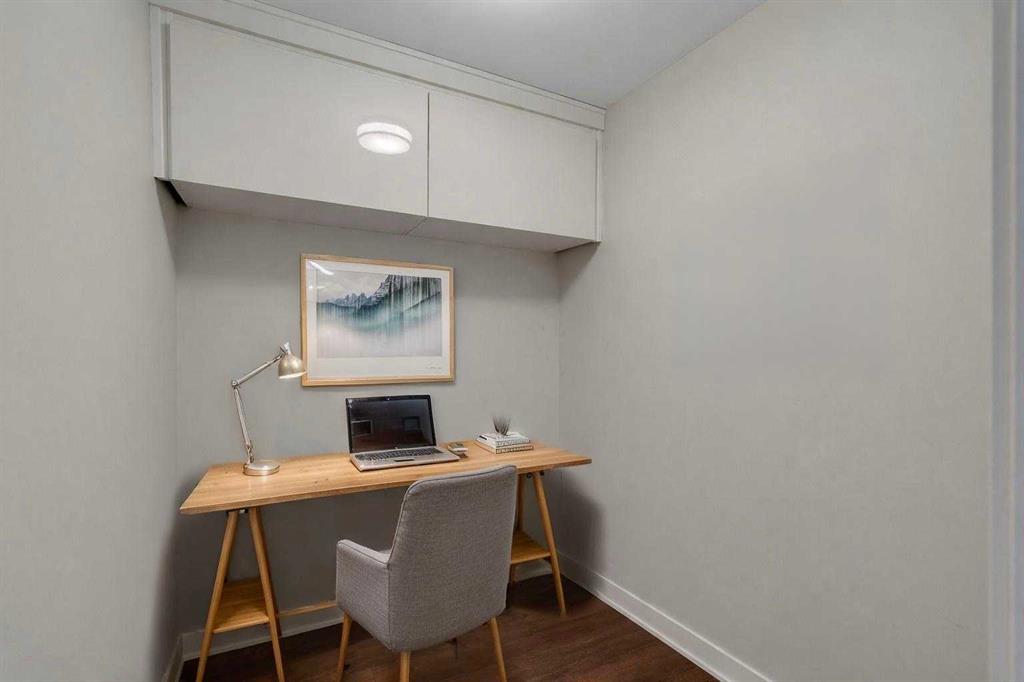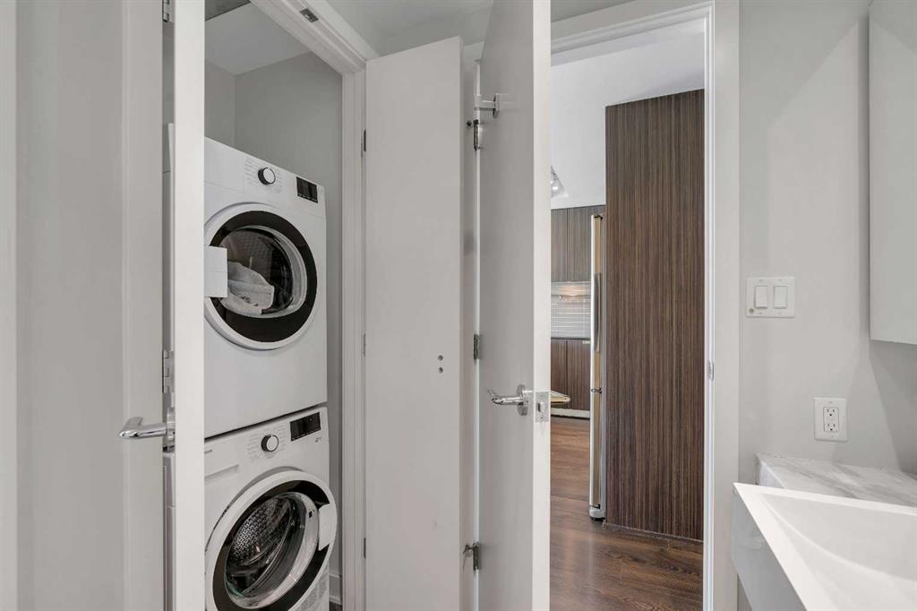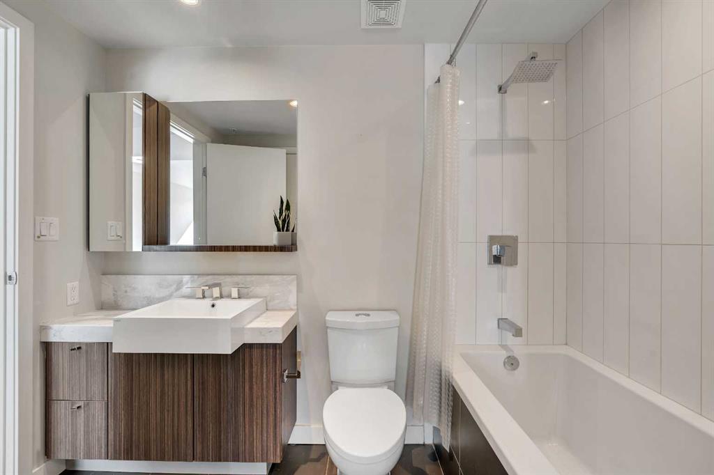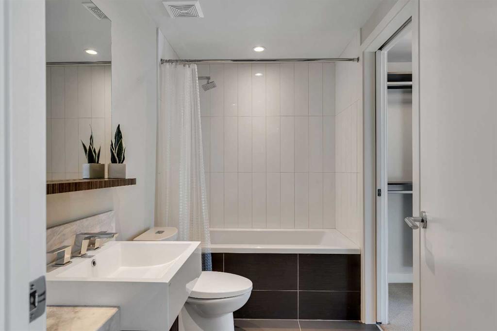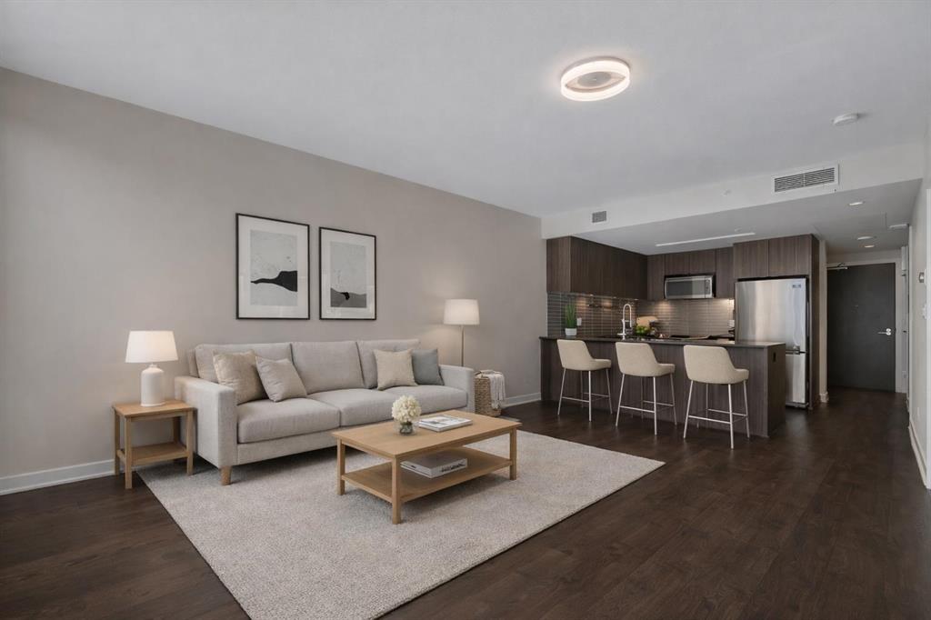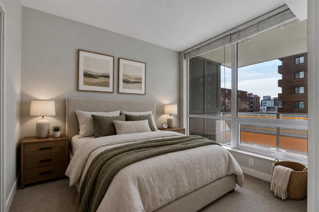 Welcome to Unit 407 in Calla, a beautifully appointed one bedroom plus den in the heart of Calgary’s vibrant Beltline, perfectly positioned next to Lougheed House and just steps from the shops, restaurants, and nightlife of 17th Avenue SW. This stylish condo offers central air conditioning and an upgraded kitchen featuring quartz countertops, full height cabinetry, and modern finishes that blend elegance with everyday functionality. The open concept layout flows seamlessly into the bright living area, complete with durable vinyl plank flooring and large windows that flood the space with natural light. Step out onto the south facing balcony, an ideal spot to enjoy your morning coffee or unwind in the evening. The primary bedroom features a walk through closet that leads to a well appointed four piece cheater ensuite, while the versatile flex space is perfect for a home office or den. Additional highlights include in suite laundry, one titled underground parking stall, and a separate storage locker. Residents of Calla enjoy premium amenities including a well equipped fitness centre, yoga studio, sauna, and guest suite. With elevated finishes, thoughtful design, and an unbeatable inner city location, this home offers the very best of urban living. MLS®: A2295083 - Beltline Apartment-Single Level Unit $315,000