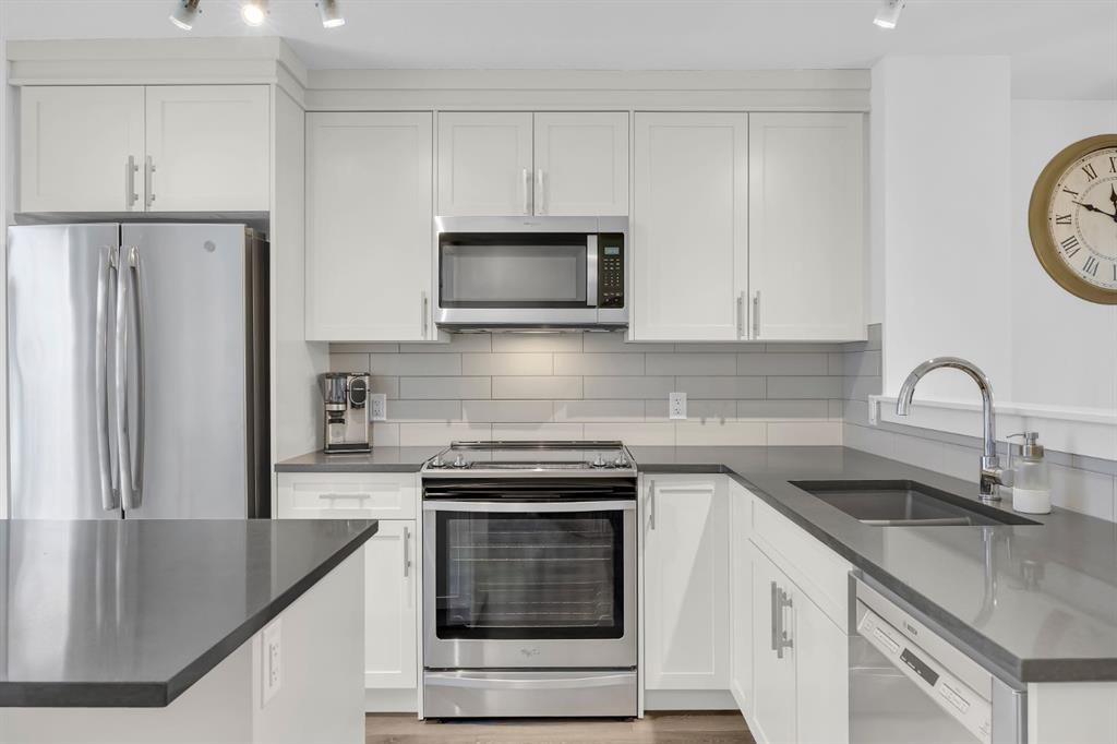 Welcome to this like-new, beautifully maintained townhome offering 2 bedrooms, 2.5 bathrooms, and over 1,200 sq. ft. of thoughtfully designed living space, complete with a private double attached garage. Located in a quiet building, this home is the perfect blend of comfort, function, and stylish upgrades. The bright, open main level features a spacious living room with a cozy fireplace, ideal for relaxing evenings. The kitchen is both timeless and practical with bright cabinetry, quartz countertops, a subway tile backsplash, stainless steel appliances (including a slide-in range), and a large island with seating, perfect for entertaining. You’ll also love the smart storage throughout, including pull-out drawers in the kitchen cabinetry and under-stair storage with added shelving/built-ins. Step outside to enjoy your outdoor space with a BBQ gas line, making summer evenings effortless. Upstairs, you’ll find two spacious primary bedrooms, each complete with a walk-in closet and its own ensuite. The stacked upper-floor laundry makes day-to-day living convenient. Added touches like closet organizers, upgraded lighting throughout, and thoughtful bathroom updates (including updated towel bars and toilet paper holders) elevate the home’s feel. The basement offers additional flexible space and storage, perfect for keeping everything organized. Additional upgrades include central A/C, and a fully finished garage featuring an epoxy floor, finished and painted walls, and a garage heater, a standout feature for Calgary winters. This home is ideally located close to the Bow River with extensive pathways and beautiful scenery. Everyday amenities are also close, with quick access to major roads for an easy commute. This townhome is an incredible opportunity to own a well-cared-for, move-in-ready property. MLS®: A2280967 - Cranston 2 Storey $499,999