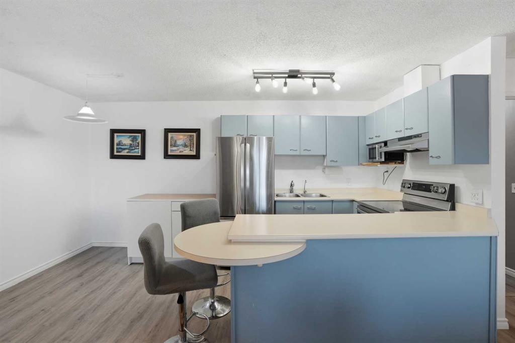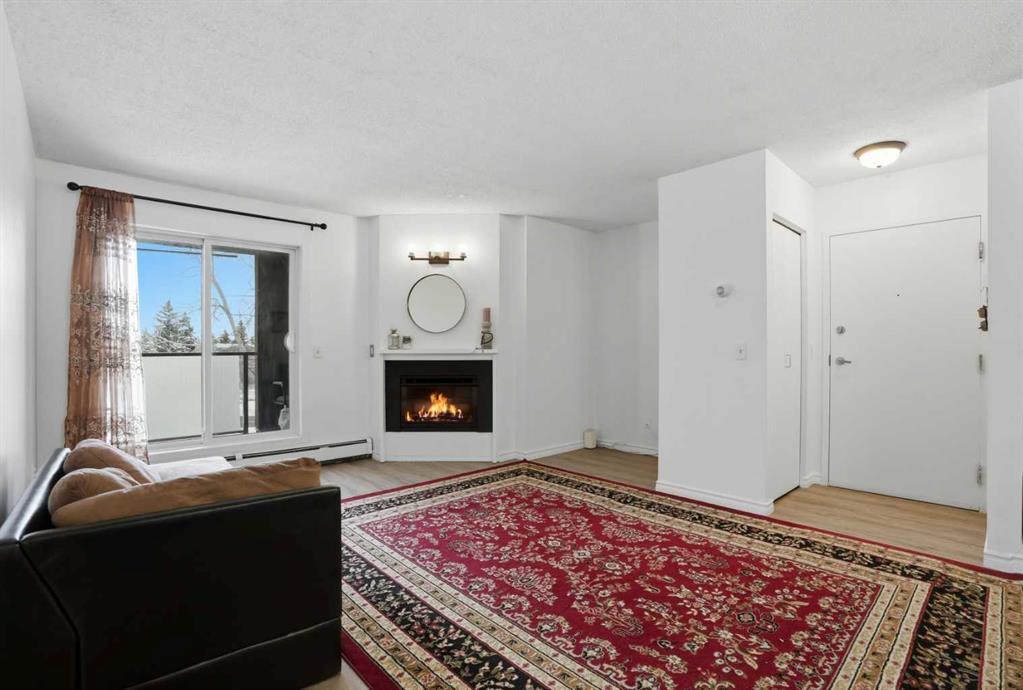 Don't miss your opportunity to own this excellent TOP FLOOR condo with UPDATED flooring, paint, trim, and all appliances! Edgecliff Estates offers exceptional amenities including a LARGE POOL & HOT TUB, steam room, fitness centre, and social room! You'll love the spacious living room with direct access to the top floor balcony, and made cozy by the corner fireplace! The primary bedroom has an ample walk-through closet and private en-suite. A 2nd full bath serves the 2nd bedroom and guests. Convenient storage and laundry (with new washer & dryer!) in the unit. This condo is a stone's throw to Nosehill Park, and the prestigious Edgemont community features extensive walking paths around the area including the Edgemont Ravine and Wetland, as well as public outdoor rinks, tennis courts, parks, playgrounds, and commercial amenities. MLS®: A2277548 - Edgemont Apartment-Single Level Unit $279,000