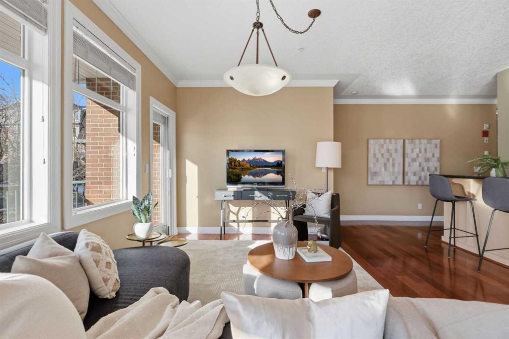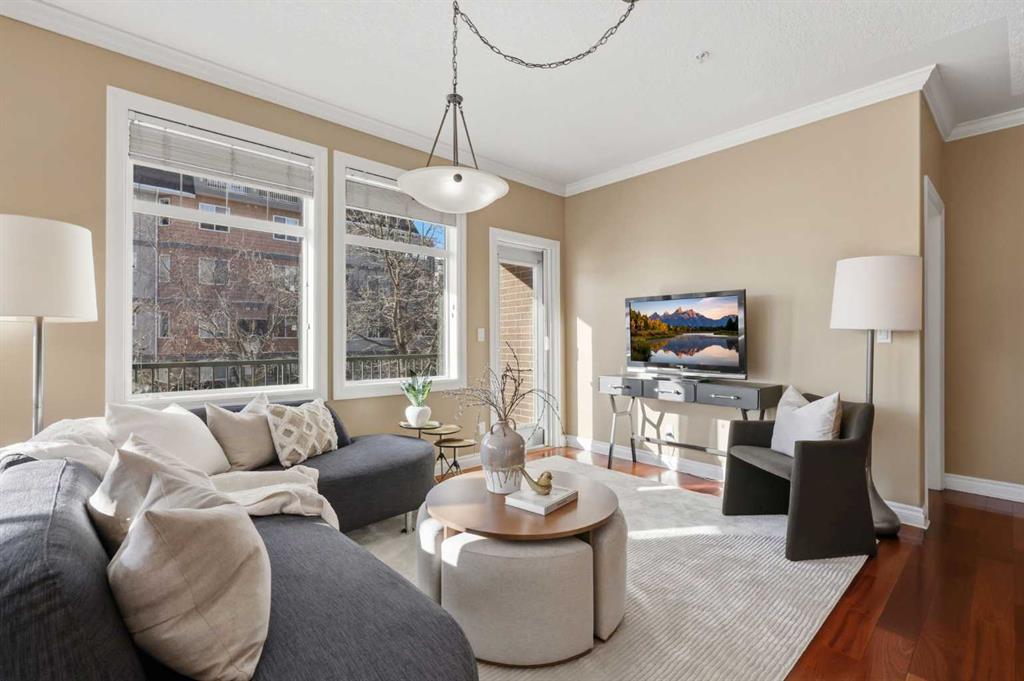 Welcome to Unit 203 at River Grande Estates, a perfect residence that offers comfort, space, and a functional layout. This gorgeous corner unit is filled with natural light from its south-facing windows, creating a warm and inviting atmosphere that feels more like a private residence than a typical condominium. Step through the spacious entrance and you’re welcomed into a stunning living space flooded with natural light. The bright living room is anchored by a cozy gas fireplace, creating the perfect place to relax or gather with friends and family. The kitchen features granite countertops, ample storage, and generous prep space, making it both functional and inviting. Just off the kitchen, a spacious dining area is surrounded by windows, an ideal setting for hosting. The south-facing patio is perfect for enjoying the sun throughout the day and features a gas BBQ hookup for effortless outdoor entertaining. The primary bedroom is spacious and comfortable, featuring double closets and a large ensuite complete with a relaxing jacuzzi tub and standalone shower. The second bedroom is also well-sized, offering flexibility as a guest room, home office, or additional living space. The unit features an additional 3-piece main bathroom, a large laundry room perfect for additional storage, providing excellent everyday functionality. River Grande Estates offers exceptional building amenities, including heated underground parking, a secure storage locker, bike storage, plenty of underground visitor stalls, a billiards room, a library, and meeting spaces. Pets are welcome with board approval. Ideally located in Erlton, one of Calgary’s most walkable inner-city communities, you are just steps from the river valley and Calgary’s incredible pathway system, perfect for walking, cycling, and enjoying the outdoors. You’re also moments from the shops and restaurants of 4th Street, Stampede Park and the BMO Centre, and can easily take in a Calgary Flames game or concert at the Saddledome, all just minutes from your door. A bright, beautifully positioned corner residence offering the comfort of a home with the convenience of inner-city living. MLS®: A2293093 - Erlton Apartment-Single Level Unit $450,000