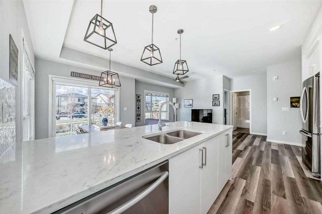 Stunning main floor corner unit! Welcome to this bright and modern 2-bedroom, 2-bathroom unit (builder size 1040SF) that combines style, function, and an unbeatable layo... MLS®: A2304387 - Harvest Hills Apartment-Single Level Unit $354,900
