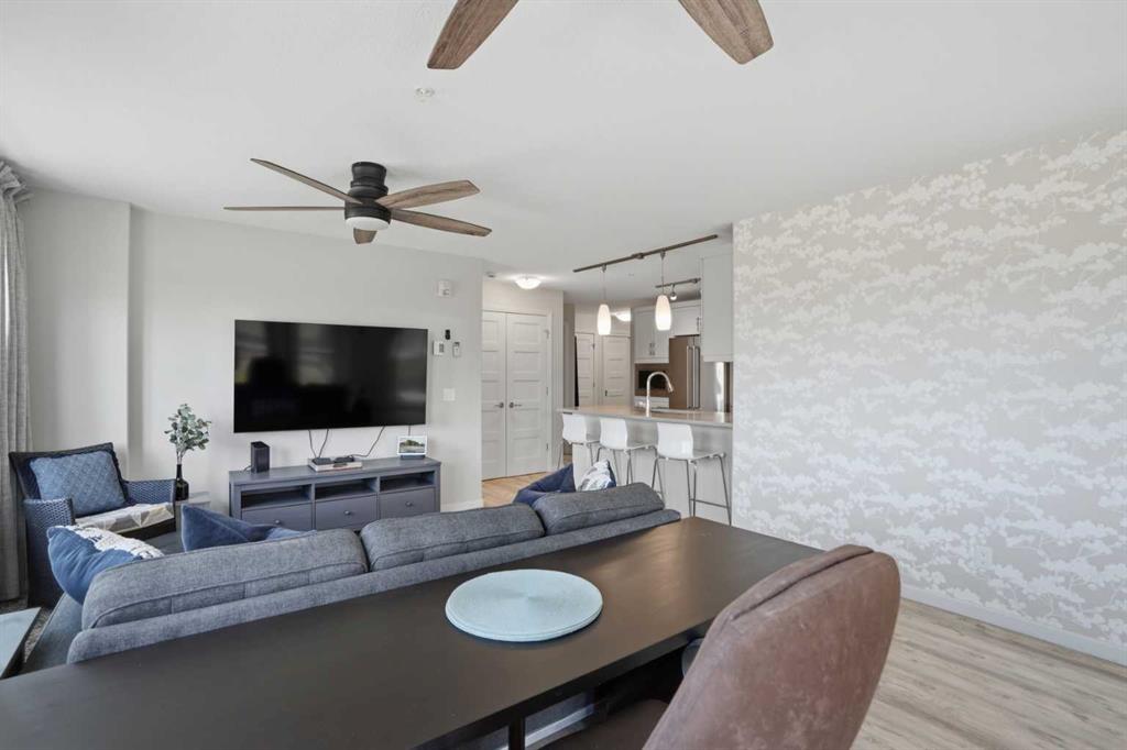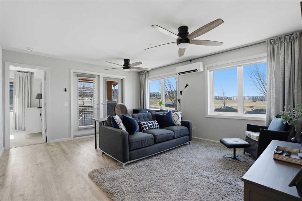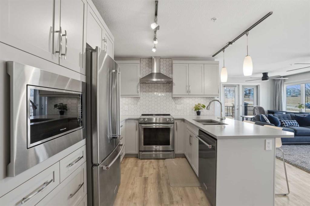 Welcome to this bright and cheerful 2-bedroom, 2-bathroom corner unit condo in the sought-after Pinnacle at Kincora, the quiet, friendly 18+ building in one of NW Calgary’s most desirable communities. This spacious and well-designed floor plan features bedrooms on opposite sides of the unit, offering added privacy, along with two full bathrooms. Formerly the show suite during the development’s sales phase, this home is loaded with upgrades throughout. Highlights include a KitchenAid stainless steel appliance package, a built-in microwave, kitchen cabinetry upgraded with multiple pull-out pot-and-pan drawers, a chimney-style hood fan, quartz countertops, and luxury vinyl plank flooring in the living area. The unit also features central air conditioning, along with blinds and drapery throughout for added comfort and convenience. A titled underground parking stall is included. The open-concept living space is perfect for both relaxing and entertaining, with direct access to a large patio complete with a BBQ gas line—ideal for enjoying outdoor living. Situated in an excellent location with open views, this home is just minutes from Sage Hill Plaza, offering convenient access to major retailers such as Walmart, T&T Supermarket, and a variety of shops, restaurants and services. Schools and other amenities are also nearby. This beautifully upgraded unit is move-in ready and offers exceptional value in Kincora NW Calgary. MLS®: A2304482 - Kincora Apartment-Multi Level Unit $374,800