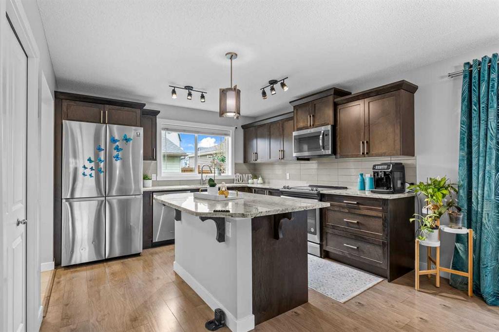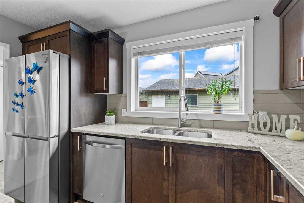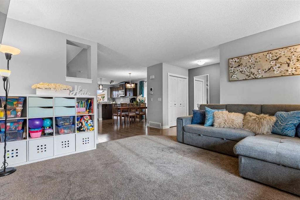 WELCOME to this BRIGHT, WELL MAINTAINED, 3-bedroom, 3.5-bathroom DUPLEX offering over 2,100 square feet of DEVELOPED LIVING SPACE with FULLY FINISHED BASEMENT and DOUBLE GARAGE located in the community of LEGACY. As you enter the home from the COVERED FRONT PORCH, you are greeted by an OPEN CONCEPT LAYOUT featuring a welcoming living room, dining room, and kitchen with GRANITE COUNTERTOPS, KITCHEN ISLAND, STAINLESS STEEL APPLIANCES, including an SMART SAMSUNG REFRIGERATOR. Upstairs, retreat to a SPACIOUS PRIMARY BEDROOM featuring a WALK-IN CLOSET and a 4-PIECE ENSUITE, complemented by two ADDITIONAL GOOD-SIZED BEDROOMS, MAIN 4 PIECE BATHROOM, and convenient laundry. The FULLY DEVELOPED BASEMENT (built by the builder) adds even more living space with a FOURTH BEDROOM, 4-PIECE BATHROOM, LARGE WALK-IN CLOSET/STORAGE ROOM, RECREATION ROOM, and a utility room. ADDITIONAL HOME FEATURES include: ELEGANT GROHE FAUCETS in kitchen and all bathrooms, comfort upgrades including INDEPENDANT SMART THERMOSTATS on each floor, CEILING FAN in PRIMARY BEDROOM, RADON MITIGATION SYSTEM in the basement, SOME NEWLY REPLACED CARPETS, RECENTLY CLEANED AND SERVICED FURNACE (July 2025) for efficiency and safety. The FULLY-FENCED for privacy, LANDSCAPED BACK YARD, includes a DECK —> perfect for outdoor entertaining or relaxing, ENCLOSED OUTSIDE STORAGE for garden tools and seasonal items between garages. LEGACY is a VIBRANT FAMILY-ORIENTATED COMMUNITY complete with schools, parks, playgrounds, walking paths, ponds, and nearby shopping. DON'T MISS THE OPPORTUNITY to make this beautiful duplex your new home. BOOK A SHOWING TODAY! MLS®: A2269913 - Legacy 2 Storey,Attached-Side by Side $599,000