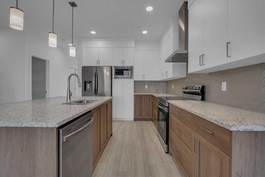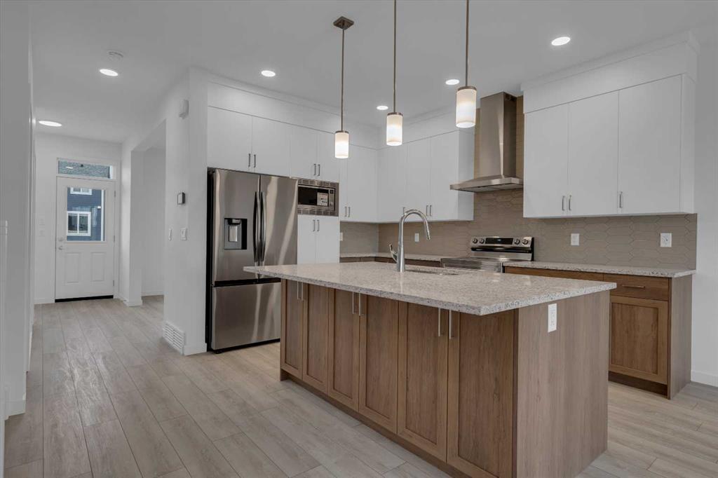 Welcome to Your Dream Home in Calgary's most sought after lake community in MAHOGANY – Where Luxury Meets Practical Living! Step into this brand new, never lived in masterpiece built by EXCEL HOMES – the upgraded Berkley model offering 1870 sf of contemporary design, exceptional functionality AND a 2 bedroom LEGAL BASEMENT SUITE W/PRIVATE ENTRY. Nestled in Calgary’s vibrant LAKE COMMUNITY, you’ll enjoy quick access off Stoney Trail or Deerfoot Trail. From the moment you walk in, this home impresses with its thoughtful layout and premium finishes. The open-concept floor plan seamlessly connects the living room, dining area, and showstopper kitchen – the true heart of the home. Cook like a pro in your chef-inspired kitchen with upgraded stainless steel appliances including built-in microwave, chimney-style hood fan, and an abundance of cabinets and deep pot drawers...and a massive island w/even more storage!. You'll also find a versatile flex room at the back of the house - perfect for home office, playroom or guest bedroom. Upstairs, the second level offers three spacious bedrooms including a stunning primary suite with a walk-in closet and dual sink ensuite. A vaulted bonus room with pot lighting adds an elevated family retreat, and the convenient upper-level laundry room makes day-to-day living easier. Thinking about rental income or extended family options? This home offers a LEGAL TWO BEDROOM SUITE, all done to upstairs standards and a private exterior side entrance. This is an amazing opportunity for rental income or extended family! As a Certified Built Green home, you’ll benefit from energy-saving features and smart home tech, including Ring doorbell, Wi-Fi-enabled garage opener, smart thermostat, extra CAT6 and USB outlets, plus 9' knockdown ceilings, metal stair railings, and luxury vinyl plank flooring on the main level. Whether you're a growing family, savvy investor, or multi-generational household, this is the home you've been waiting for. Move in, unpack, and start living your best life in Mahogany. MLS®: A2267884 - Mahogany 2 Storey $749,900