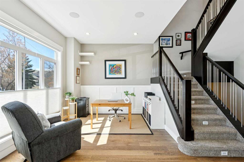 Includes: All Blinds and Rods (Drapes will be removed), Built In Speakers and Sound System (buyer will need bluetooth hooked up to operate), Garage Wall Slats, Basement Bar Fridge, Planter Box, Art and Drying Rack on the Garage Site Influences: Back Lane, Back Yard, City Lot, Front Yard, Garden, Interior Lot, Landscaped, Level, Private, Rectangular Lot, Street Lighting Property InformationProperty Type: Semi Detached (Half Duplex) Home Style: 2 Storey,Attached-Side by Side Year Built: 2017 Total Floor Area: 1,911 sq. ft. Brokerage: CIR Realty Listed Date: Please login or create an account Community InformationCity/Town: Calgary Community: Mount Pleasant ExteriorLot Size: 0.07 sq.ft. Lot Shape: Back Lane,Back Yard,City Lot,Front Yard,Garden,Interior Lot,Landscaped,Level,Private,Rectangular Lot,Street Lighting Exterior: Cedar, Stone, Stucco, Wood Frame Construction: Cedar,Stone,Stucco,Wood Frame Frontage: 2.32M 7`7" Front Exposure: S Roof: Asphalt Shingle Parking: Double Garage Detached Total Parking: 4 InteriorHeating: Forced Air Basement: Full Floor Finish: Carpet, Hardwood, Tile Fireplace Details: For Sale RoomsTotal Bedrooms: 4 (Bedrooms Above: 3) Bathrooms: Full: 3 / Half: 1 Above Grade: 7 Legal, Financial & PossessionZoning: R-CG Legal Description: Lot/Unit: Lot/Unit:,Plan: 3955R,Block: Tax: 5948.00 Possession: Negotiable Occupancy: Owner Restrictions: None Known Listing Courtesy of CIR Realty The data included in this display is deemed to be reliable, but is not guaranteed to be accurate by the Calgary Real Estate Board. MLS®: A2304627 - Mount Pleasant 2 Storey,Attached-Side by Side $950,000