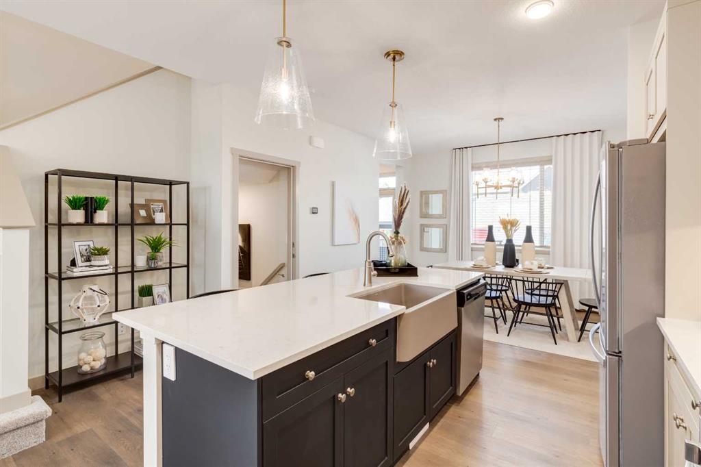 A CURRENT SHOWHOME READY FOR ITS FIRST OWNER IN CALGARY’S FIRST GARDEN-TO-TABLE COMMUNITY, this Homes by Avi Alexander model balances thoughtful design with everyday ease—and it’s ready to live beautifully from the very first day. RANGEVIEW BY SECTION 23 IS BUILT DIFFERENTLY. Instead of cul-de-sacs and token parks, it offers ORCHARDS, GARDEN PLOTS, AND HARVEST FESTIVALS that bring neighbours together. Life here starts before you even reach the porch. And this home? It was designed to match that same sense of connection. The FULL-WIDTH FRONT PORCH sets the tone, giving the exterior presence and the main floor an anchor. Step inside to 9’ ceilings and a living room centered on a fireplace wall with mantle and TV niche. Quartz counters run throughout, and the kitchen’s SILGRANIT APRON-FRONT SINK, full-height cabinetry, and gas rough-in for the range keep it both polished and practical. Dining and lounge areas stay open and connected, while a 10’X10’ REAR DECK with its own BBQ line extends life outside. Upstairs, three bedrooms and laundry land exactly where family life needs them. The primary retreat adds a walk-in closet and ensuite, while two additional bedrooms share a full bath—keeping mornings calm even when everyone’s on the move. Across the main and upper levels, the residence totals 1,472 sq. ft. of bright, functional living. And then there’s the lower level: A SELF-CONTAINED, LEGAL DWELLING with its own kitchen, bedroom, and bath. With 9’ foundation walls, quartz counters, 30” upper cabinets, and a SEPARATE SIDE ENTRANCE, it’s designed to live independently. TWO FURNACES, TWO A/C UNITS, and a sub-panel make it as capable as the main home above. Whether it becomes a private place for in-laws, independence for teenagers or university-aged kids, or a source of rental income, the options are wide open. Practical upgrades are already in place: a REAR DOUBLE DETACHED GARAGE, SPRINKLER SYSTEM for the yard, 200-amp electrical service, and an 80-GALLON HOT WATER TANK. Add it all together and you have 1,948 SQ. FT. OF FINISHED LIVING SPACE—a versatile home that offers both togetherness and autonomy under one roof. In Rangeview by Section 23, neighbours swap zucchinis, kids grow up with dirt under their nails, and homes are built to support more than one way of living. This home delivers on all of it: family-friendly, flexible, and future-ready. Book a showing, walk the gardens, then step inside—this one connects the dots immediately. MLS®: A2256565 - Rangeview 2 Storey $659,900
