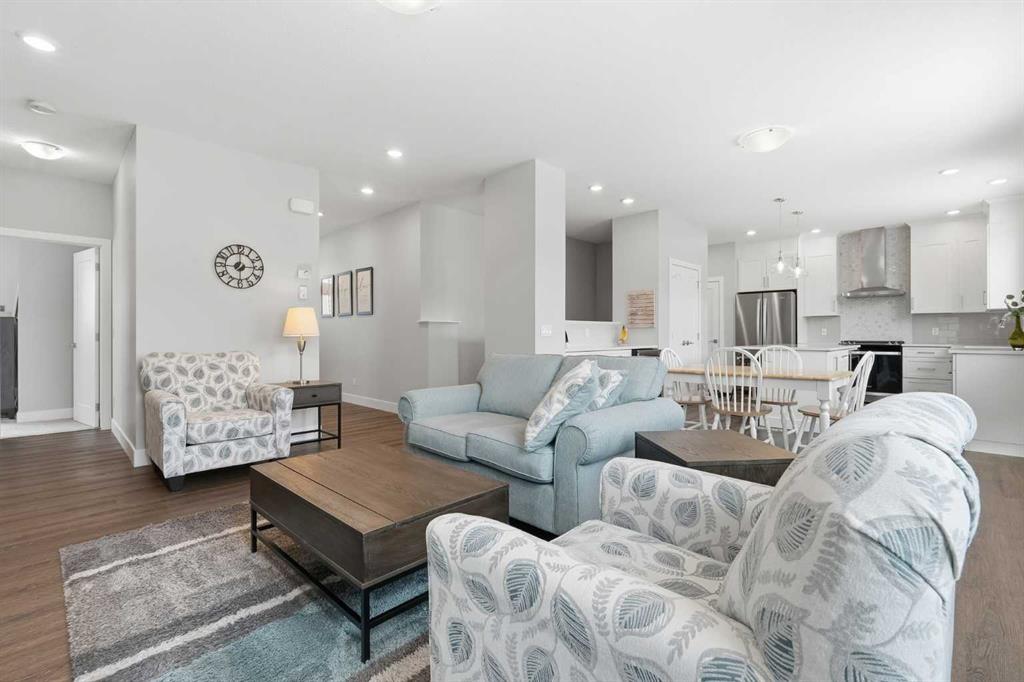 Experience the ease of lock-and-leave villa living in this nearly brand-new home, completed in 2024 and still carrying that fresh, new-home feel (and smell!) Elegantly and functionally designed, this low-maintenance villa offers tons of developed living space and is surrounded by everyday conveniences, including a nearby nature reserve, Spruce Meadows, shopping, and excellent access to major transportation routes. Inside, the home is loaded with upgrades. Through the front door you’re greeted with luxurious vinyl plank flooring underfoot, high ceilings above, and a neutral color palette throughout - each space absolutely drenched in natural sunlight. A quaint den to your right offers flexible use, while a handy half bath is thoughtfully tucked away from the main living and dining areas. You’re then welcomed into the bright living room, featuring a gorgeous upgraded gas fireplace and access to your rear deck, complete with a gas hookup for your BBQ. The kitchen & dining area truly anchor the home with their “wow” factor: extended height cabinets, a stunning hood fan, gas range, fridge with water, and a built-in microwave all form part of the upgraded appliance package. Quartz countertops make prep and cleanup effortless, while under-cabinet lighting adds warmth and ambiance at the end of the day. All cabinetry is finished with soft-close hinges and practical organizers throughout. The dedicated coffee/butler server station with a beverage cooler keeps your main counter space free and functional, and offers even more prep & storage space. The main level is designed with true convenience in mind, including side-by-side laundry. The generous primary bedroom features a large walk-in closet that leads into your spa-like 5-piece ensuite complete with dual sinks, a stunning tub, stand-alone shower, separate toilet room, and luxurious in-floor heating. Downstairs, high ceilings create a bright, open feel that’s far from a typical basement. A huge living area offers flexibility for a gym, media space, games room - whatever suits your lifestyle. Two additional bedrooms, a 4-piece bathroom, and ample storage complete the lower level. The utility room includes a high-efficiency furnace, sump pump, rough-in for radon mitigation, air exchange system, and a large hot water tank. This villa is finished with central A/C, a double attached garage, and a generously sized driveway (shoveled by the condo corp!) Beautifully appointed and designed for effortless living, this home is the perfect blend of comfort, luxury, and low-maintenance convenience - an ideal option for anyone seeking easy living. This is truly a smart move. MLS®: A2272391 - Silverado Attached-Side by Side,Bungalow $635,000
