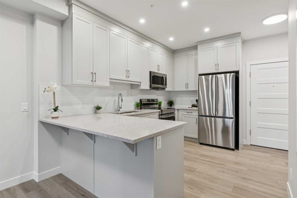 Welcome to The Whitney in beautiful Springbank Hill, where modern design meets natural serenity. This gorgeous suite is ideal for professionals, first-time homebuyers, mature couples, or investors seeking exceptional value in a premium location. It’s a rare opportunity to own a beautifully finished home in a prestigious neighbourhood - one that offers luxury living at an affordable price. Step into your brand-new 1-bedroom/1-bath home, thoughtfully designed with elevated finishings throughout. The heart of the home is the stunning kitchen, featuring an open layout that feels bright and effortless. Enjoy luxury vinyl plank flooring, quartz counters, upgraded soft-close cabinetry, and stainless-steel Samsung appliances -perfect for gourmet cooking or entertaining. The spacious bedroom offers a true retreat, complete with an extensive walk-through closet that provides exceptional storage and flows into the 4-piece sparkling bathroom. One of the standout features of this home is the generous balcony, adding an impressive 148.8 sq. ft. of outdoor living space - ideal for morning coffee, evening dinners, container gardening, or simply relaxing. You’ll love the comfort and convenience of in-suite laundry and air conditioning. Convenient features continue with titled underground parking, storage, and premium sound attenuation for added peace and quiet. Outside your door, an exceptional lifestyle awaits. You’re just a 5-minute stroll to Aspen Landing, home to more than 50 shops and services-Safeway, Starbucks, Shoppers Drug Mart, restaurants, banks, and more. The C-Train, transit, and major routes like 17th Ave SW are moments away, making it an easy 10-minute commute to downtown. The upcoming Springbank Hill Market will add even more vibrancy to this already sought-after neighbourhood. With its perfect blend of style, comfort, and walkable urban-meets-nature living, this home is a winner! Book your showing today, as it's move-in ready and waiting for you! MLS®: A2274517 - Springbank Hill Apartment-Single Level Unit $339,600