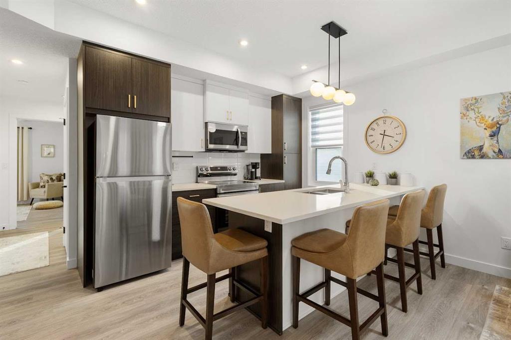 Contemporary European-style townhome with 2 beds, 2 baths, a spacious balcony on the TOP floor & a tree-lined view. From the moment you enter, the home showcases a desig... MLS®: A2281390 - Springbank Hill Townhouse-Stacked $459,000