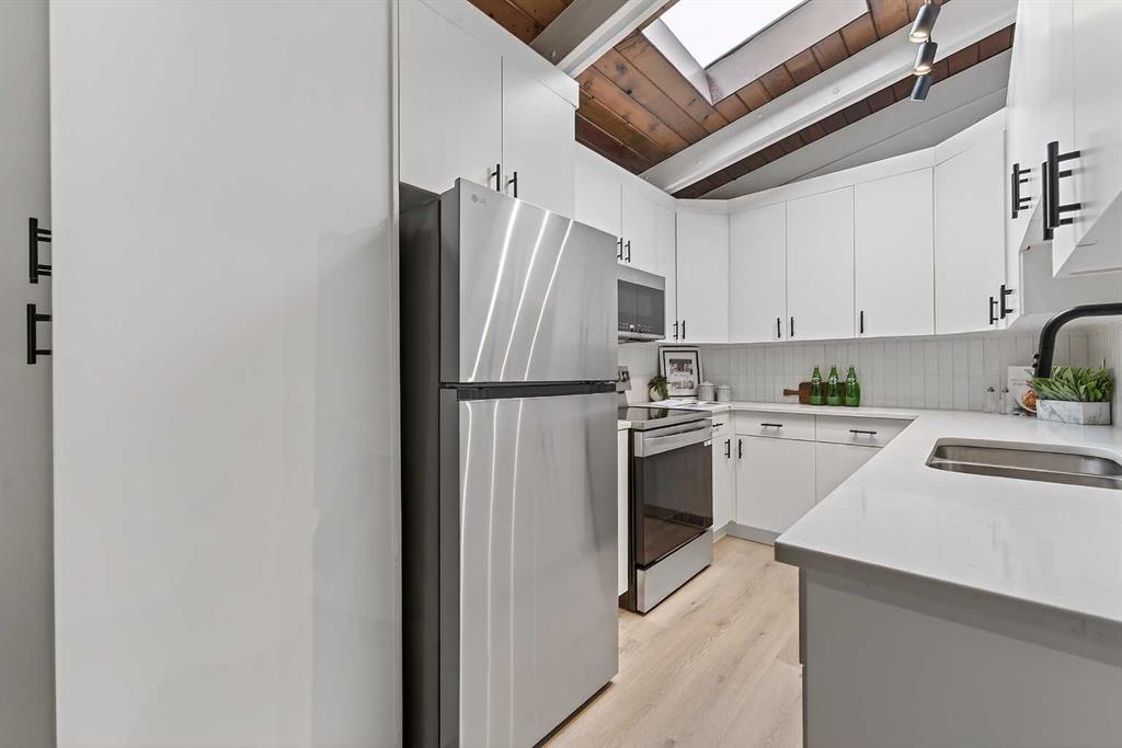 3 BEDS | 2 FULL BATHS | TOTAL 1,878 SQFT | 4-LEVEL SPLIT | VARSITY | RENOVATED | FENCED PRIVATE PATIO | QUIETLY FACING GREENSPACE | EXPOSED BEAMS | WOOD BURNING FIREPLACE... MLS®: A2282720 - Varsity 4 Level Split $469,800