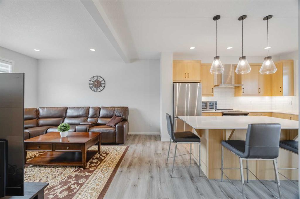 Discover the inviting charm of this 4-bedroom, 2.5-bath 3-storey townhome offering over 1,650 sq. ft. of finished living space in Walden, backing onto peaceful green space. The main floor features 9-ft ceilings and a bright, open layout with large windows, modern finishes, and a stylish kitchen with stainless steel appliances, quartz counters, ample cabinetry, and a central island perfect for everyday living and entertaining. The dining area seamlessly connects to a private balcony overlooking the park—ideal for morning coffee or summer barbecues. Upstairs you’ll find three comfortable bedrooms, convenient upper-level laundry, and a spacious primary bedroom with a walk-in closet and a 4-piece ensuite. The fully developed lower level adds a fourth bedroom or flexible space—perfect for a home office, gym, or guest room. Outside, enjoy the added privacy and views of backing onto green space—an increasingly rare feature in townhome living. And don’t forget, you'll be living in Walden, close to parks, pathways, schools, Township Shopping Centre, and with easy access to major routes. Enjoy nearby green spaces and a connected community lifestyle in one of Calgary’s most desirable neighbourhoods. MLS®: A2305936 - Walden 3 (or more) Storey $510,000