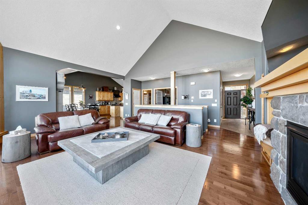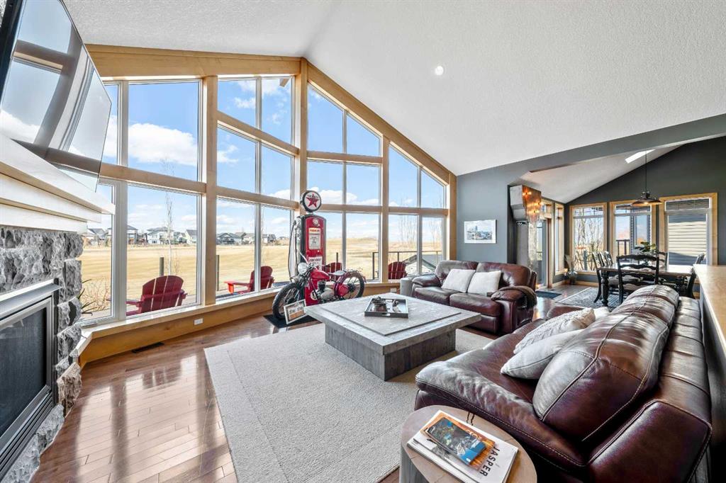 33 Wyndham Park Way Speargrass Golf Course Living! Backing the 10th fairway of the Speargrass Golf Course and just steps from the Bow River, this beautifully upgraded bungalow offers peaceful views, stunning sunsets, and over $200,000 in thoughtful upgrades... Welcome to this beautifully maintained bungalow located along the 10th fairway of the Speargrass Golf Course, offering peaceful views, stunning sunsets, and a relaxed lifestyle in one of Wheatland County’s most charming communities. Just steps from the Bow River, this home combines scenic surroundings with a bright and spacious interior designed for comfortable living. The main floor features an open-concept layout with soaring vaulted ceilings, skylights, and expansive windows that fill the home with natural light while capturing the surrounding golf course views. The impressive stone fireplace anchors the great room, creating a warm and inviting space for gathering. The kitchen is well appointed with granite countertops, a large island, and generous cabinetry, flowing seamlessly into the dining area with patio doors that open onto the upper deck—perfect for morning coffee or evening sunsets overlooking the fairway. The primary suite offers a private retreat with direct deck access and a spa-inspired 5-piece ensuite, while the main floor also includes a dedicated office with French doors, convenient laundry area, and mudroom access from the attached garage. The fully finished lower level walkout provides a spacious family and recreation room, two additional bedrooms, and a full bathroom—ideal for guests, family, or entertaining. Over the past several years, the sellers have invested over $200,000 in thoughtful upgrades enhancing both comfort and efficiency. Improvements include central air conditioning, a high-efficiency Napoleon furnace, HRV system, Culligan water softener upgrade, and a full CAFÉ appliance package. Additional highlights include Gemstone architectural exterior lighting, professionally finished garage with epoxy flooring and custom cabinetry, a Master Spa Twilight hot tub, stamped concrete patio, custom deck upgrade, irrigation system, new landscaping and sod, interior painting, bathroom updates, new carpeting, and a brand s hingles will be completed in June. The landscaped yard provides beautiful curb appeal and multiple outdoor spaces to relax and enjoy the peaceful golf course setting. Speargrass offers a quiet community atmosphere with golf, river access, walking paths, and RV parking, all within an easy commute to Calgary, Strathmore, and Okotoks. This is a rare opportunity to enjoy golf course living with river access in a beautifully upgraded home. MLS®: A2300489 - Carseland Bungalow $959,000