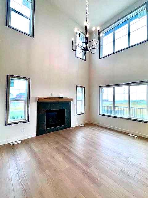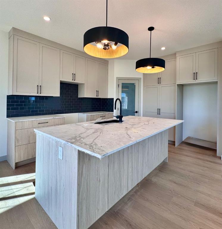 Welcome to this spectacular 4 bedroom executive home on a HUGE 0.29 ACRE lot - complete with a WALK OUT basement and a WRAPAROUND PORCH that instantly charms. Step inside to find gorgeous vinyl plank flooring, a chef’s kitchen with beautiful oatmeal cabinetry, QUARTZ counters, a large island, and a corner PANTRY. The soaring OPEN-TO-ABOVE living room fills with natural light and features a sleek FIREPLACE while the dining area overlooks your expansive backyard. A main-floor bedroom with walk-in closet—perfect for guests, multi-generational living, or a private office—adds thoughtful flexibility. Upstairs, a stunning bonus room with built-in bookcase sets the tone for family living. The primary retreat is a true haven with a luxurious ENSUITE featuring a freestanding tub, walk-in shower, and large walk-in closet. Two additional bedrooms , a stylish family bath, and a UPPER laundry room complete the level. The walkout basement awaits your vision, with patio doors opening to a huge yard that stretches wide around the home. All this, just 10 minutes to Stoney Trail, with golf, shopping, schools (including a brand-new high school just 5 minutes walk away!), and every amenity at your fingertips. Experience the perfect blend of elegance, space, and lifestyle—your new home awaits! MLS®: A2261871 - Bridges of Langdon 2 Storey $899,500