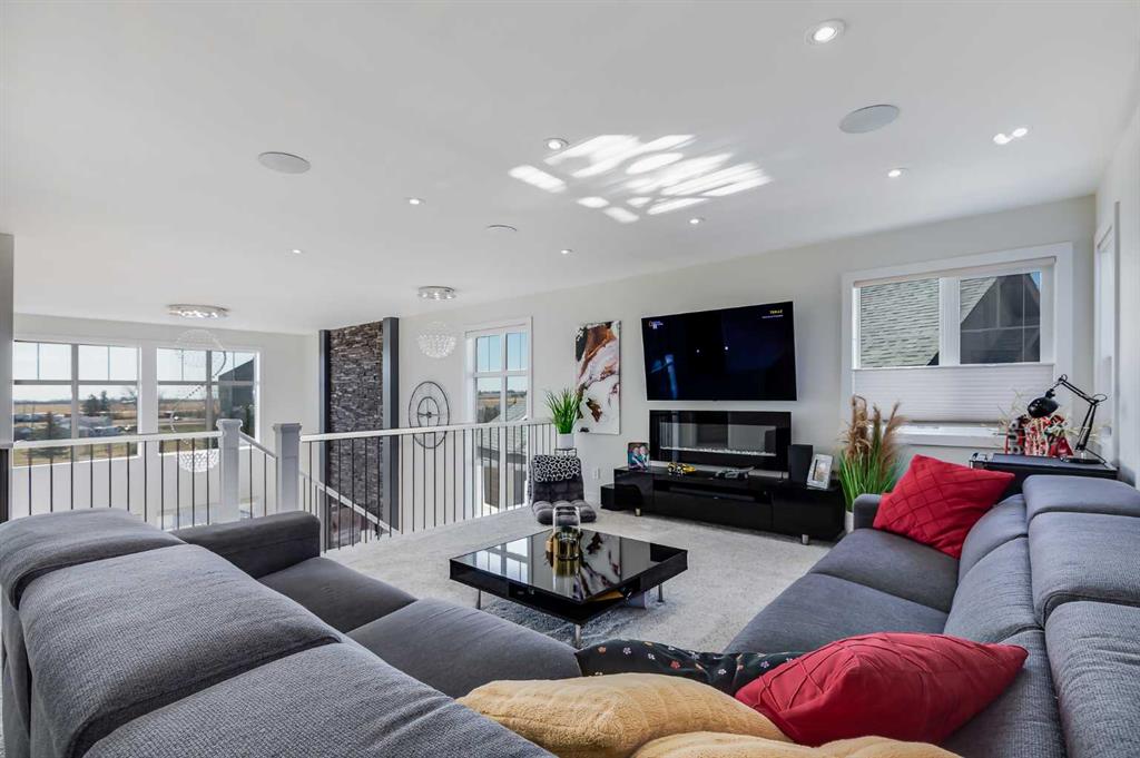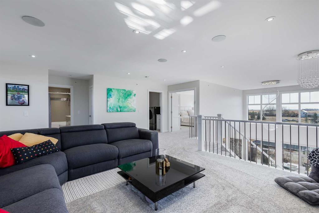 Gorgeous and spacious 2 storey house with 3 car attached garage and walkout basement, 4 bedrooms in total, 3 & 1/2 bathrooms, over 3,800 square feet of living space. Perfect for big family and entertainment. Very well maintained and clean, ready to move in. Main floor features elegant entrance area, big den for home office, nice powder room, large family room with high ceiling and beautiful fireplace, gourmet kitchen with upgraded appliances, plenty of cabinet and counter top space and a large pantry conveniently located between kitchen and mud room leading to triple garage, good size dining room with patio door to a huge (700 SqFt) deck. Large master bedroom upstairs with big and elegant ensuite bathroom (7 x 5 ft shower), organised big walk-in closet, convenient walk through laundry room with sink, two good size kids' bedrooms, main bathroom, and spacious bonus room. Professionally finished basement with additional bedroom, full bathroom, and huge recreation room with french door leading to big concrete patio. A lot of upgrades in this lovely home like big windows for brightness, 9 ft ceiling on main floor and basement, flat ceiling, plenty (157) pot lights, wolf range hood fan, gas stove, upgraded and new (2025) washer and steam dryer, upgraded and organised closets, gazebo 12 x 12 ft, nest thermostat, sprinklers system for fire and for landscaping, smoke and CO detectors, new air condition, new roof (2025), newer hot water tank (2024), new light fixtures, new carpet, newer toilets (2021), new door seals, newly painted exterior - stucco and all trims, newly painted garage interior, gas line for BBQ on deck and patio under deck, gas line for heater in garage, new garage door (2025), exposed aggregate driveway, soffit pot lights, all interior doors upgraded (solid 200 lbs), nice landscaping, sunny south east backyard backing to the golf course and pond. Perfect location on quiet and safe cul-de-sac. MLS®: A2304385 - Lakes of Muirfield 2 Storey $1,295,000