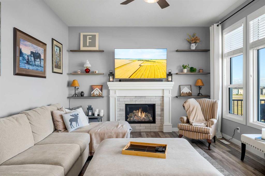 Includes: permanent christmas lights, screens on decks and remotes, garage heater, mirrors in gym area, shelving in furnace room, doorbell cameras, tire rack, roof shelving in garage, bicycle pulley system, underground sprinkler system, slat wall in garage Site Influences: Back Yard, Backs on to Park/Green Space, Front Yard, Fruit Trees/Shrub(s), Landscaped, No Neighbours Behind, Rectangular Lot, Underground Sprinklers, Views Property InformationProperty Type: Residential Detached Single Family Home Style: Bungalow Year Built: 2018 Total Floor Area: 1,468 sq. ft. Brokerage: RE/MAX First Listed Date: Please login or create an account Community InformationCity/Town: Okotoks Community: Air Ranch ExteriorLot Size: 0.12 sq.ft. Lot Shape: Back Yard,Backs on to Park/Green Space,Front Yard,Fruit Trees/Shrub(s),Landscaped,No Neighbours Behind,Rectangular Lot,Underground Sprinklers,Views Exterior: Composite Siding, Stone, Wood Frame Construction: Composite Siding,Stone,Wood Frame Frontage: 12.79M 42`0" Front Exposure: E Roof: Asphalt Shingle Parking: Concrete Driveway, Double Garage Attached, Front Drive, Garage Door Opener, Garage Faces Front, Heated Garage, Insulated, Oversized Total Parking: 4 InteriorHeating: Fireplace(s), Forced Air, Natural Gas Basement: Finished, Full, Walk-Out To Grade Floor Finish: Carpet, Ceramic Tile Fireplace Details: For Sale RoomsTotal Bedrooms: 3 (Bedrooms Above: 1) Bathrooms: Full: 2 / Half: 1 Above Grade: 5 Legal, Financial & PossessionZoning: TN Legal Description: Lot/Unit: Lot/Unit:,Plan: 1510057,Block: Tax: 5322.00 Possession: Negotiable Occupancy: Owner Restrictions: Restrictive Covenant,Utility Right Of Way Listing Courtesy of RE/MAX First The data included in this display is deemed to be reliable, but is not guaranteed to be accurate by the Calgary Real Estate Board. MLS®: A2260439 - Air Ranch Bungalow $935,000