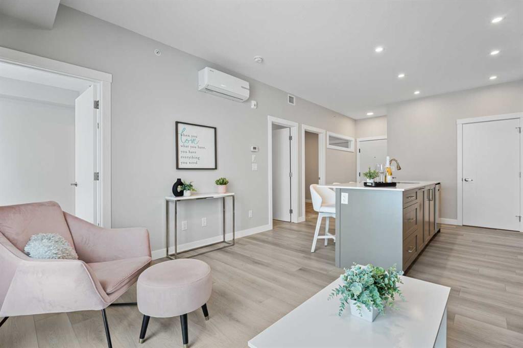 Better Than New in Lawrie Park! Gorgeous new construction without the wait!! Welcome to this gorgeous, upgraded 2 bedroom, 2 bathroom TOP FLOOR condo in the desirable Lawrie Park building in Wedderburn, Okotoks. Still under warranty and loaded with thoughtful upgrades, this home blends comfort, function, and style. Step into a bright white kitchen featuring a massive island, quartz countertops, and durable LVP flooring throughout the main living space. The open concept layout is perfect for entertaining or everyday living. Both bedrooms are spacious, with the primary suite offering a full ensuite and great closet space. Extras like in suite laundry, air conditioning, and a large balcony (with mountain views on a clear day!) overlooking the dog park make this home even more appealing, especially in a pet friendly building! You'll also enjoy the convenience of a heated underground parking stall, separate storage locker, and low condo fees. Located in vibrant Wedderburn, you're close to walking paths, schools, and exciting new commercial development. This condo truly feels better than new, move in and enjoy maintenance free living at its finest! MLS®: A2276994 - Wedderburn Apartment-Single Level Unit $364,900
