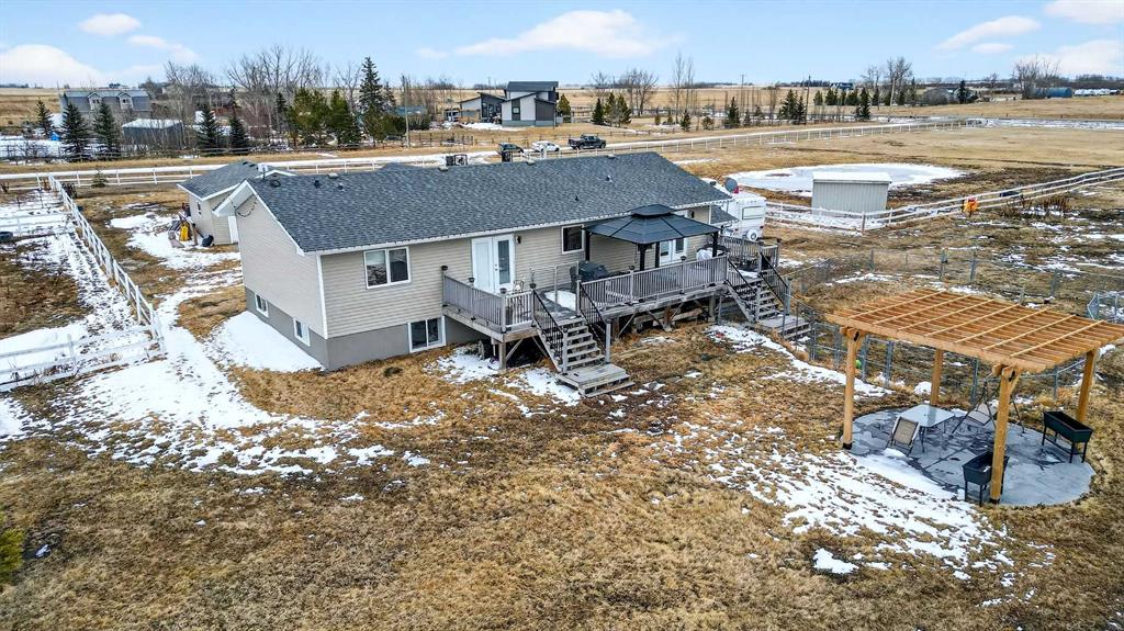 Includes: Garage Electric Heater, Garage Remote(s), Gazebo, Storage Container (Northside of Property), Shed, Year Round waterer(s), Freezer Kitchen, Freezer Downstairs, Hot Tub Site Influences: Back Yard, Dog Run Fenced In, Gazebo, Private Property InformationProperty Type: Residential Detached Single Family Home Style: Acreage with Residence,Bungalow Year Built: 2004 Total Floor Area: 1,565 sq. ft. Brokerage: RE/MAX Key Listed Date: Please login or create an account Community InformationCity/Town: Rural Rocky View County Community: Rural Rocky View County ExteriorLot Size: 4.18 sq.ft. Lot Shape: Back Yard,Dog Run Fenced In,Gazebo,Private Exterior: Vinyl Siding, Wood Frame Construction: Vinyl Siding,Wood Frame Front Exposure: E Roof: Asphalt Shingle Parking: Double Garage Detached, Heated Garage Total Parking: 10 InteriorHeating: Forced Air, Natural Gas Basement: Full Floor Finish: Carpet, Tile, Vinyl Fireplace Details: For Sale RoomsTotal Bedrooms: 5 (Bedrooms Above: 3) Bathrooms: Full: 3 / Half: 0 Above Grade: 6 Legal, Financial & PossessionZoning: R-RUR Legal Description: Lot/Unit: Lot/Unit:,Plan: 0212119,Block: Tax: 3493.00 Possession: Negotiable Occupancy: Tenant Restrictions: Easement Registered On Title,Restrictive Covenant Listing Courtesy of RE/MAX Key The data included in this display is deemed to be reliable, but is not guaranteed to be accurate by the Calgary Real Estate Board. MLS®: A2298656 - Rural Rocky View County Acreage with Residence,Bungalow $1,099,000