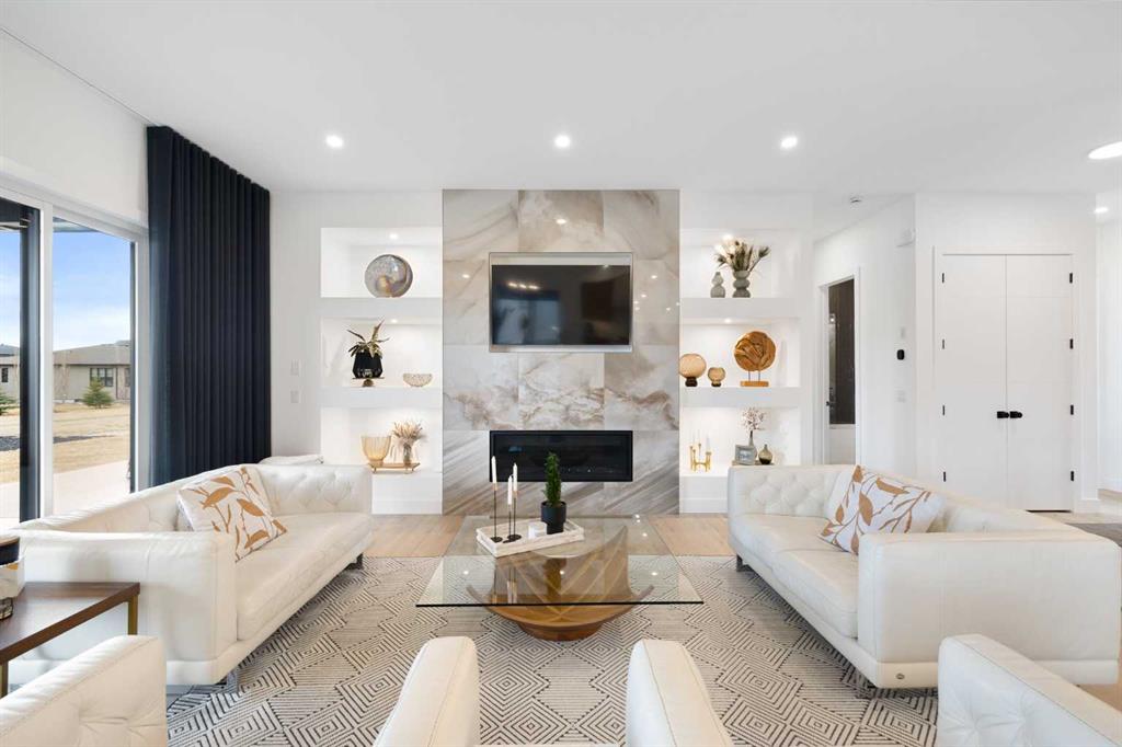 Includes: Bar fridge x2, wine racks, hot tub, TV and mount in living room, bsmt and den Site Influences: Landscaped, Lawn, Level Property InformationProperty Type: Residential Detached Single Family Home Style: Bungalow Year Built: 2024 Total Floor Area: 1,853 sq. ft. Brokerage: RE/MAX First Listed Date: Please login or create an account Community InformationCity/Town: Rural Rocky View County Community: Monterra ExteriorLot Size: 0.31 sq.ft. Lot Shape: Landscaped,Lawn,Level Exterior: Cement Fiber Board, Composite Siding Construction: Cement Fiber Board,Composite Siding Frontage: 32.04M 105`1" Front Exposure: NW Roof: Asphalt Shingle Parking: Triple Garage Attached Total Parking: 6 InteriorHeating: Forced Air Basement: Full Floor Finish: Carpet, Hardwood, Tile Fireplace Details: For Sale RoomsTotal Bedrooms: 4 (Bedrooms Above: 1) Bathrooms: Full: 3 / Half: 0 Above Grade: 5 Legal, Financial & PossessionZoning: R-CG Legal Description: Lot/Unit: Lot/Unit:,Plan: 0810165,Block: Tax: 5510.00 Monthly Fee: 140 Possession: Negotiable Occupancy: Owner Restrictions: Yes Listing Courtesy of RE/MAX First The data included in this display is deemed to be reliable, but is not guaranteed to be accurate by the Calgary Real Estate Board. MLS®: A2279150 - Monterra Bungalow $1,449,900